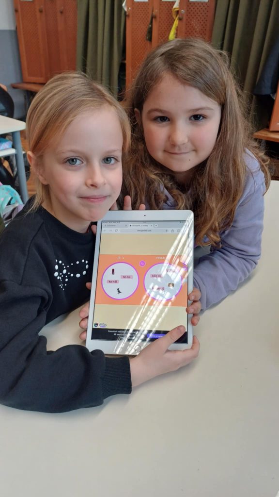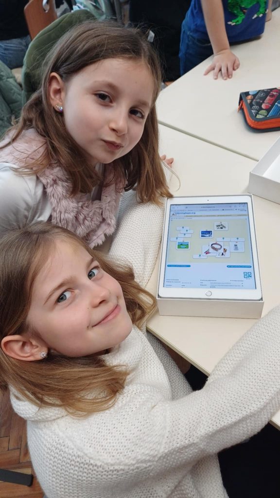 Az 1.a osztály irodalom órán az olvasás gyakorlásához a fejlesztelek.hu oldalról készítettek feladatokat iPaden. Robotika órán békát építettek és programoztak a gyerekek.