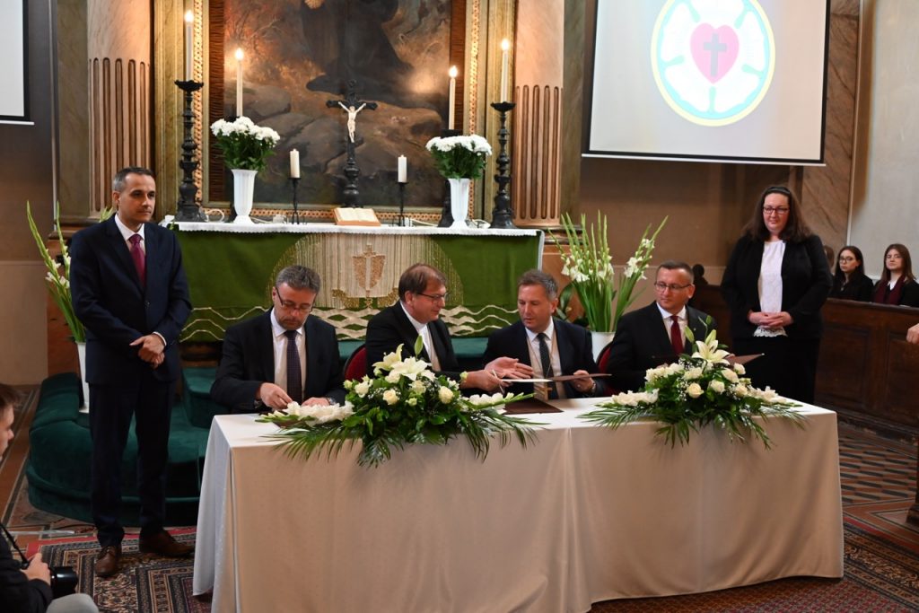 Az intézmények azon együttműködési szándékát, hogy őszinte lelki és szakmai kapcsolatot építsenek, ezzel is erősítve keresztény hagyományaink ápolását, Dr. Fabiny Tamás, a Magyarországi Evangélikus Egyház elnök-püspöke és Mgr. Peter Mihoč, a szlovákiai Keleti Egyházkerület püspöke is megerősítette aláírásával.